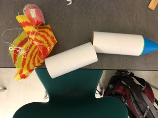 This morning, Mrs.Frantz is coming into Mr.Holler's room to help us figure out our center of pressure equation. Today we are also figuring out how to keep the rocket assembly in the middle of the rocket and how to make the parachute and egg capsule come out of the rocket so that it makes it to the ground safely.